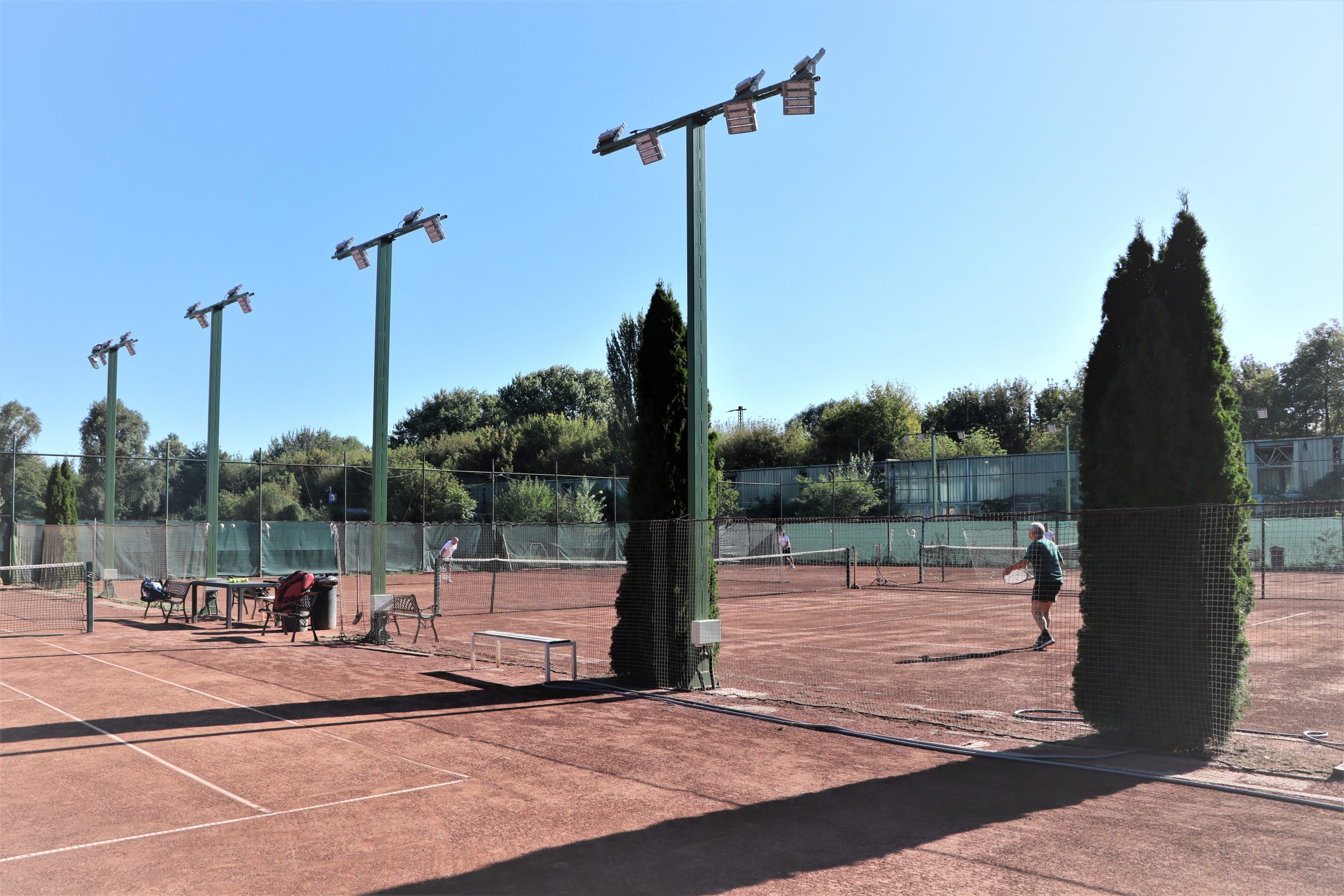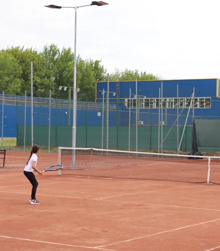 Telephelyünkön 4 fedett könnyűszerkezetes, salakos és 4 szabadtéri pálya várja nyáron a tenisz szerelmeseit. A 4 fedett oldalpanelei nyáron részlegesen ki vannak szedve, ezáltal levegősebb a csarnok, illetve az eső sem lehet akadály.